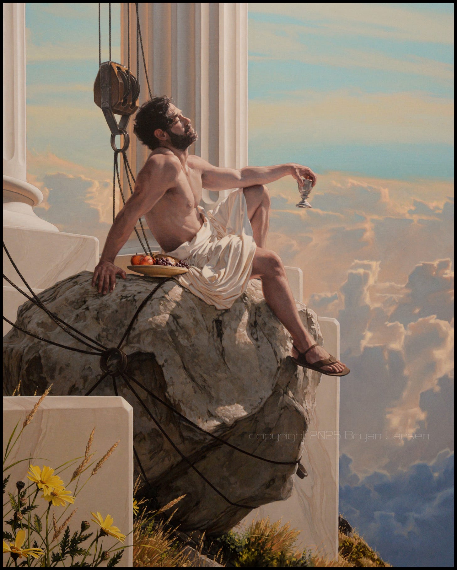 “Mine is a story of upward mobility” is how I began my introduction to Bryan Larsen through the webform on his site. I was approaching 50 and reflecting on the happiness I’ve found in my life despite my humble beginnings. I wanted to do something to celebrate my achievement. I had the idea to commission a painting. I’m no artist so I had no idea how to visualize the theme, but I at least had a title in mind that could capture it: Sisyphus Rests.